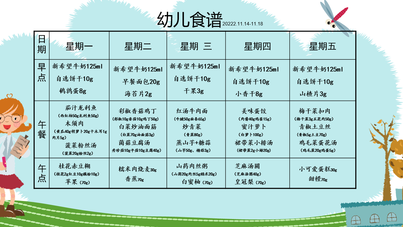 2022年11月14日-2022年11月18日幼儿食谱