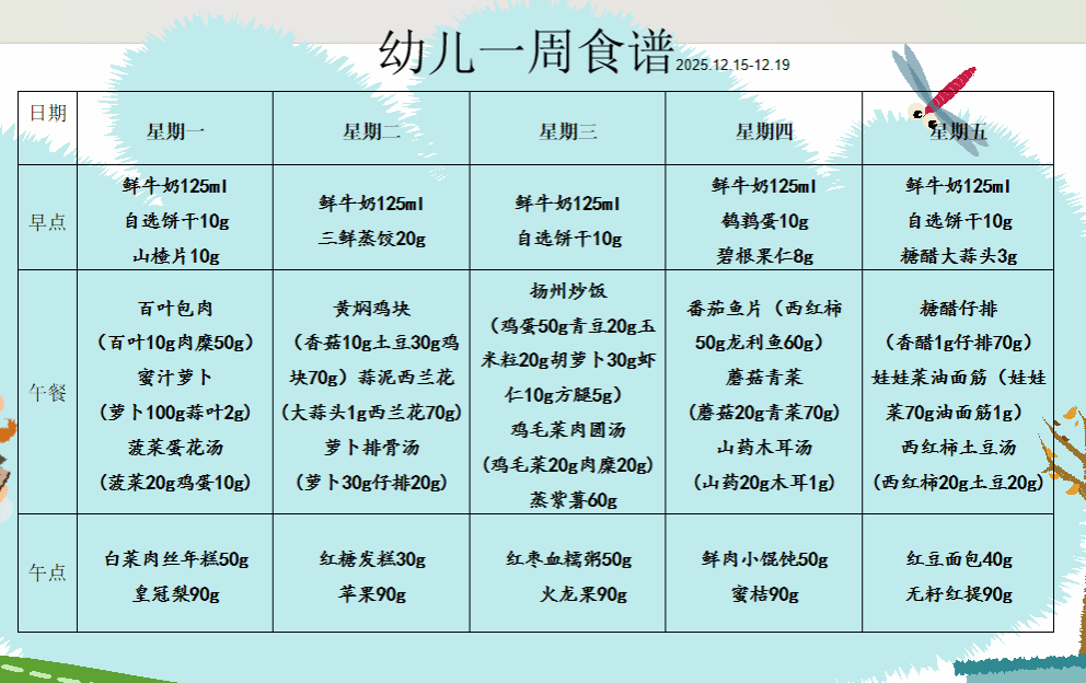 2025年12月15日-2025年12月19日幼儿食谱