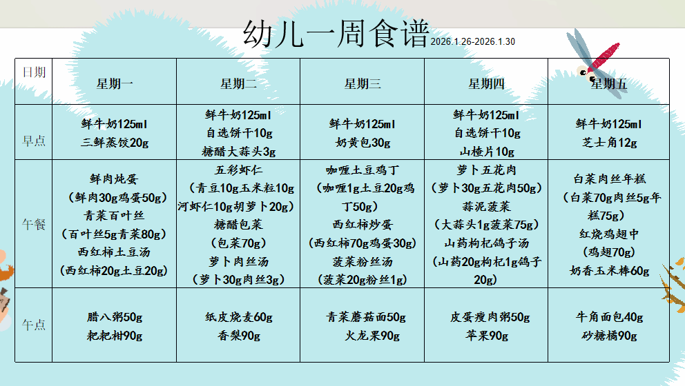 2026年1月26日-2026年1月30日幼儿食谱