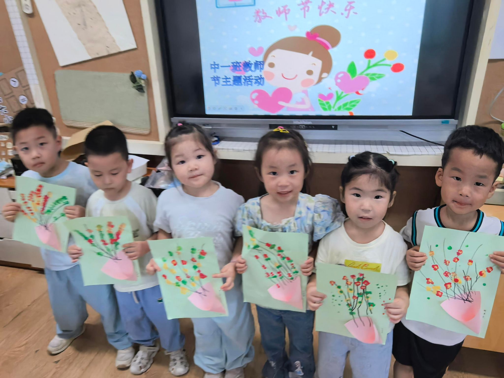 教师节来临之际,中一班开展了一场充满童趣的手指点画。每一幅作品承载着孩子们对老师最纯真的祝福。